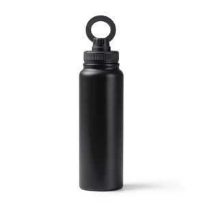 Stamina BI1788 - Black - HEYMAN Double-walled thermal bottle in recycled 304 stainless steel with lid with magnetic ring for mobile phone holder