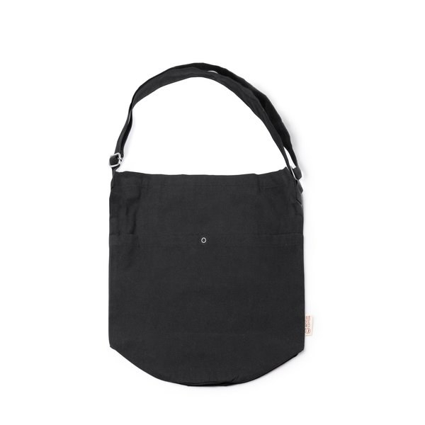 Bag made of recycled cotton of 240 g/m² with front pocket, button closure and inner pocket.