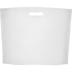 Heat-sealed bag with gusset on the base, made of non-woven fabric with die-cut handle.
