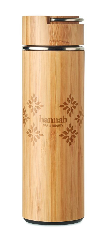 Opt for this naturally coloured bottle made of bamboo. Double wall insulated vacuum flask in stainless steel