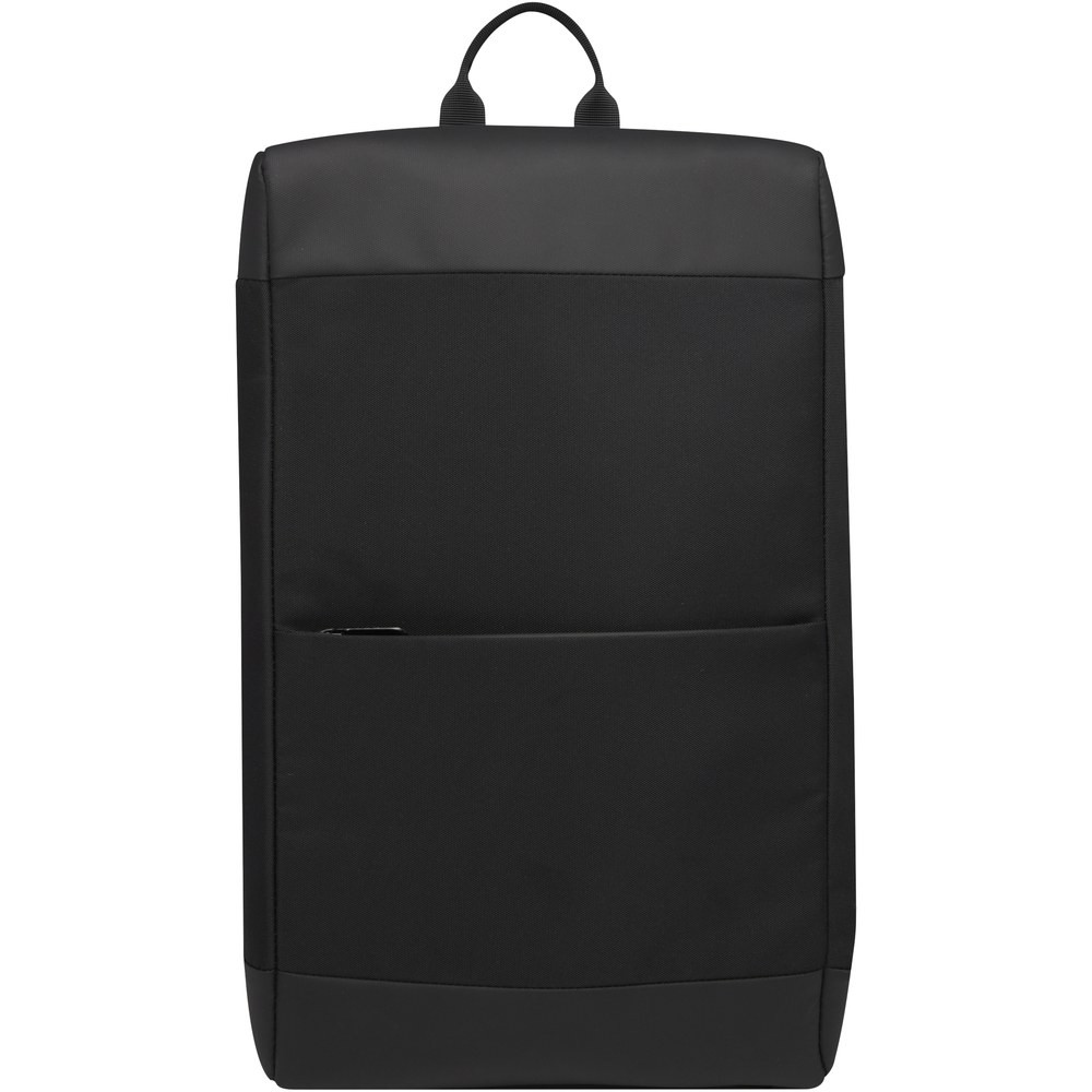 Made with durable 900D GRS recycled polyester, the Rise backpack holds all necessary functions. It features a padded laptop sleeve suitable for a 15.6" laptop, an extra sleeve for a small notebook or tablet, and zipped pockets for smaller items. Additionally, there is an elastic strap on the inside for water bottle placement. The back of the backpack holds a convenient elastic strap, making it easy to attach to a trolley.