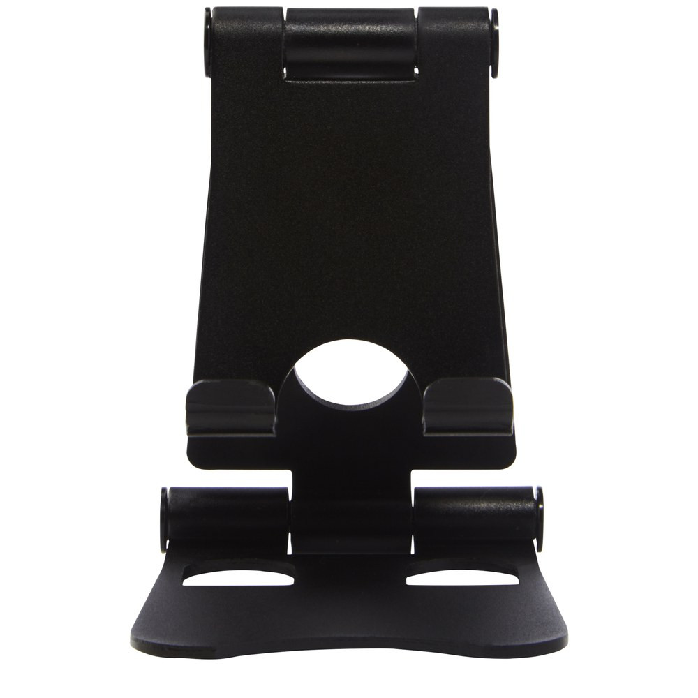 Foldable phone stand made of aluminium. Both the height and viewing angle can be adjusted, making this the perfect accessory for conference calls, broadcasts, live streaming, or simply to watch a movie. The bottom has anti-slip material to prevent it from moving. Delivered in a premium kraft paper box with a colourful sticker.