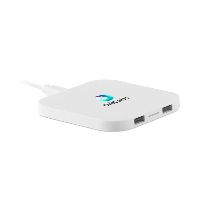 Charging pad with 2 port 2.0 hubs and USB port computer to createwireless charging dock for smartphones.