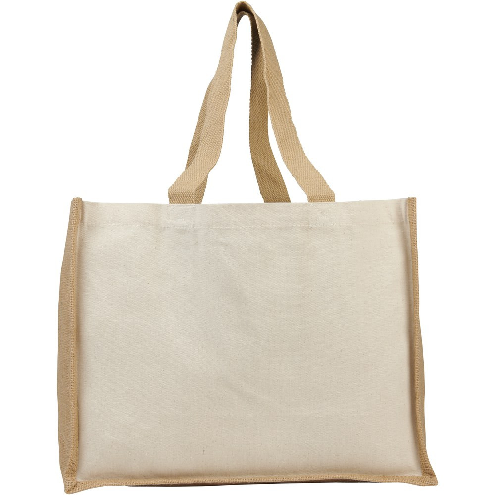 The Varai canvas and jute tote bag with 23 litre capacity is the ideal bag for grocery shopping, weekend outings, or any other daily errands. A combination of 320 g/m² canvas and 330 g/m² jute gives the bag a sturdy feel and a resistance of up to 12 kg weight. Made in India and OEKO-Tex certified.