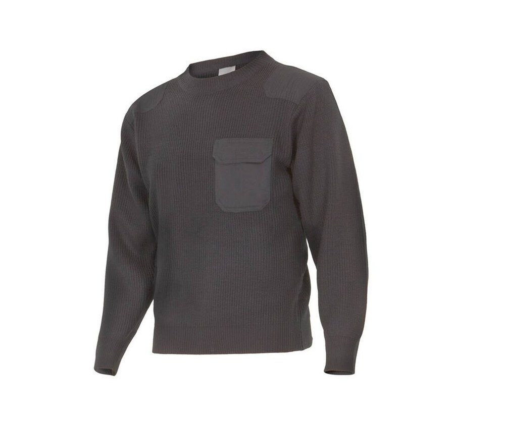 This thick sweater stands out in style with its contrasting effect provided by vertical stripes. It is also very practical with its Velcro® pocket on the chest.