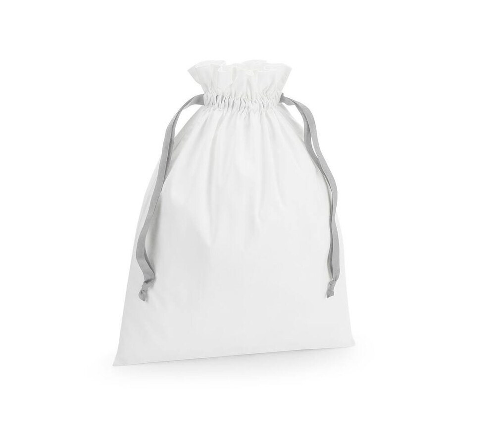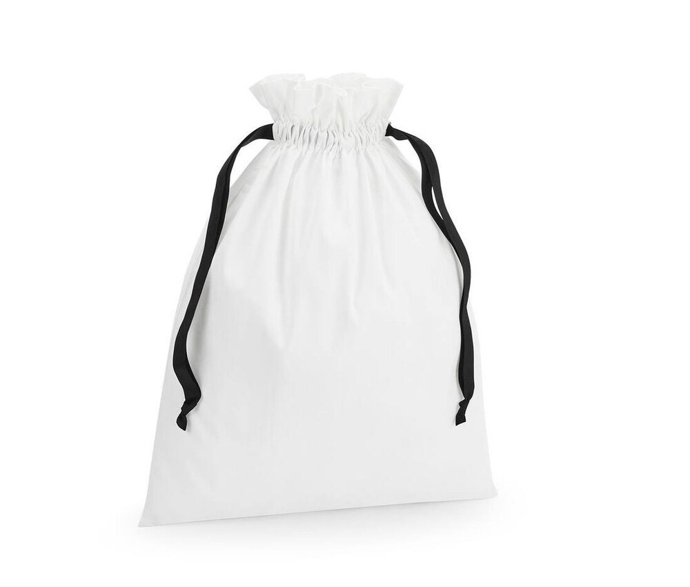 Perfect for seasonal gifting. Multi-purpose use. Contrasting colour ribbon. Ribbon drawstring closure. TearAway label for ease of rebranding. Available in three sizes - S, M, L.