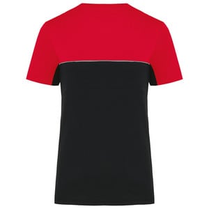 Contrasting piping between the two-tone parts of the garment (body, front and back).