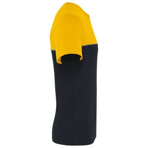 Contrasting piping between the two-tone parts of the garment (body, front and back).