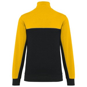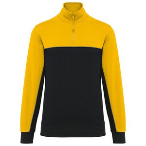 Contrasting piping between the two-tone parts of the garment (body and sleeves, front and back).