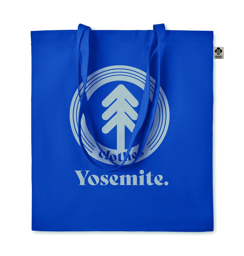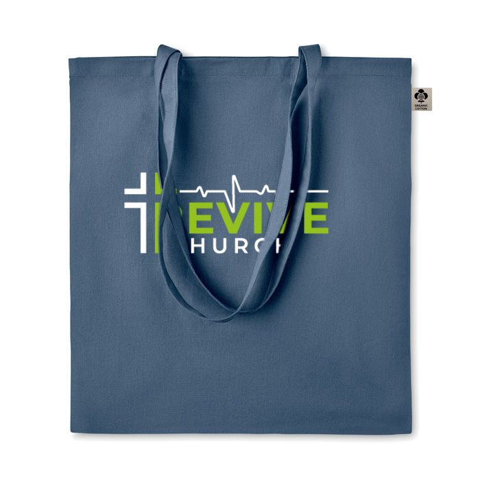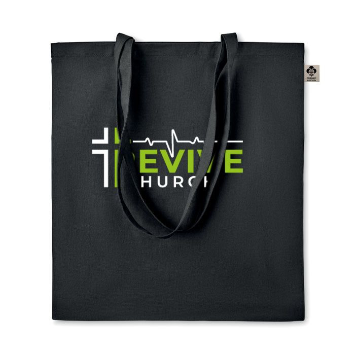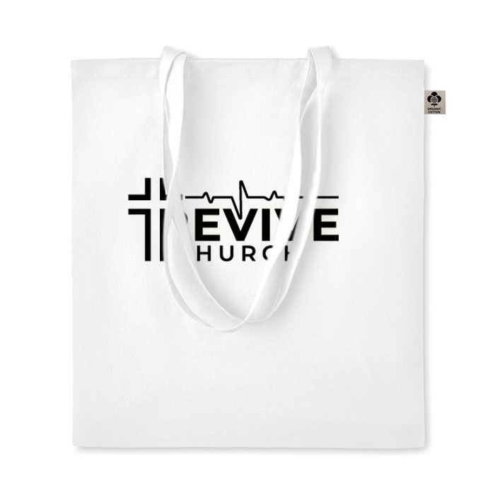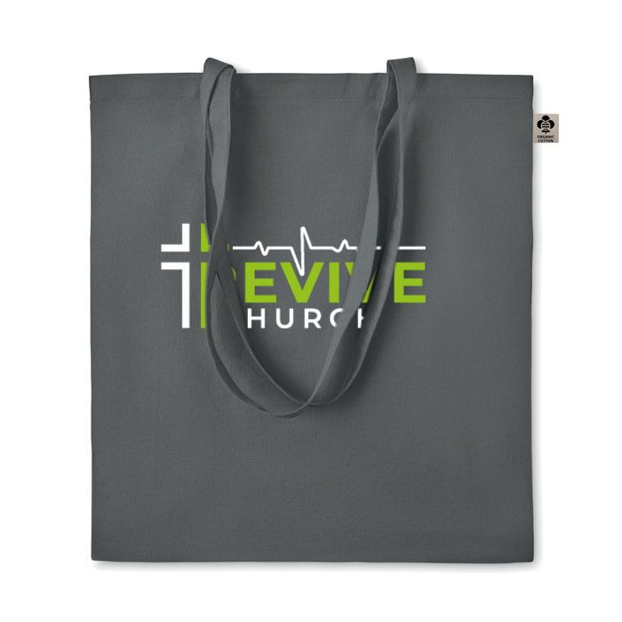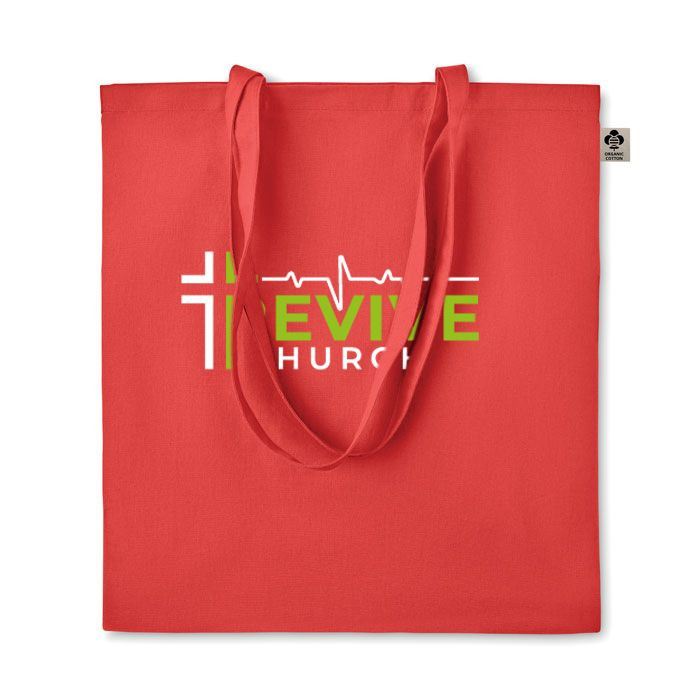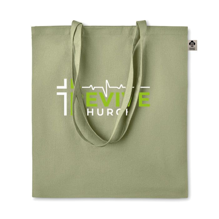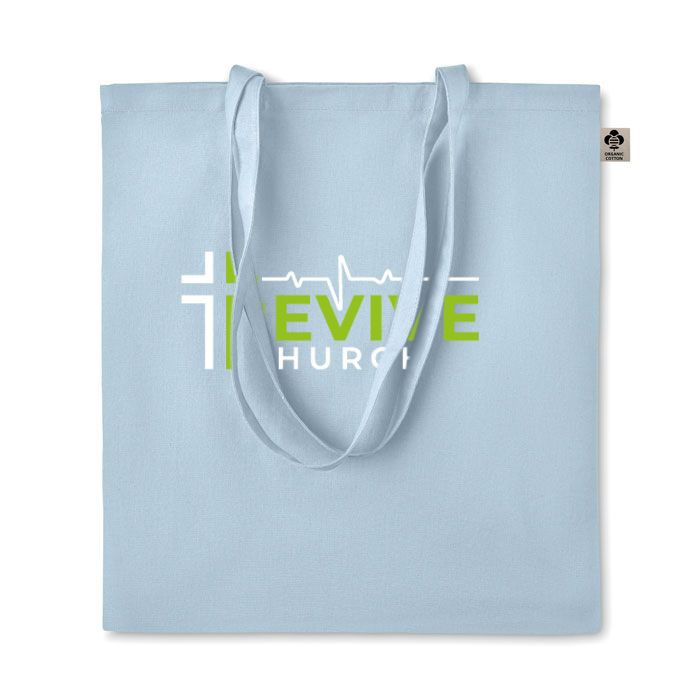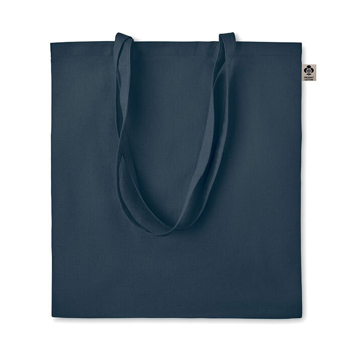 Certified organic cotton shopping bag with long handles.